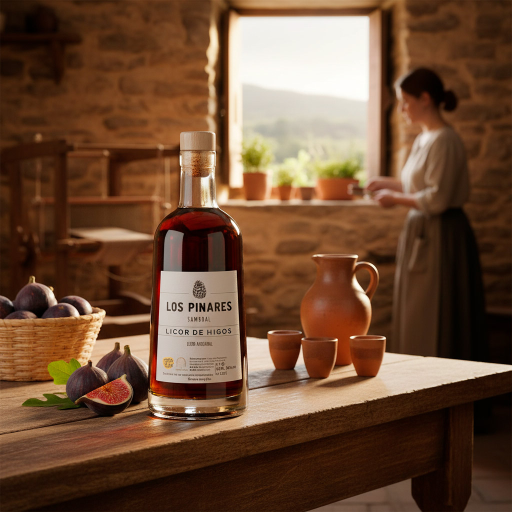 Selección de higos en su punto óptimo y maceración lenta en alcohol de base alimentaria con control de temperatura. Filtrado para claridad sin perder cuerpo. Embotellado en nuestro obrador de Samboal con trazabilidad de lote.